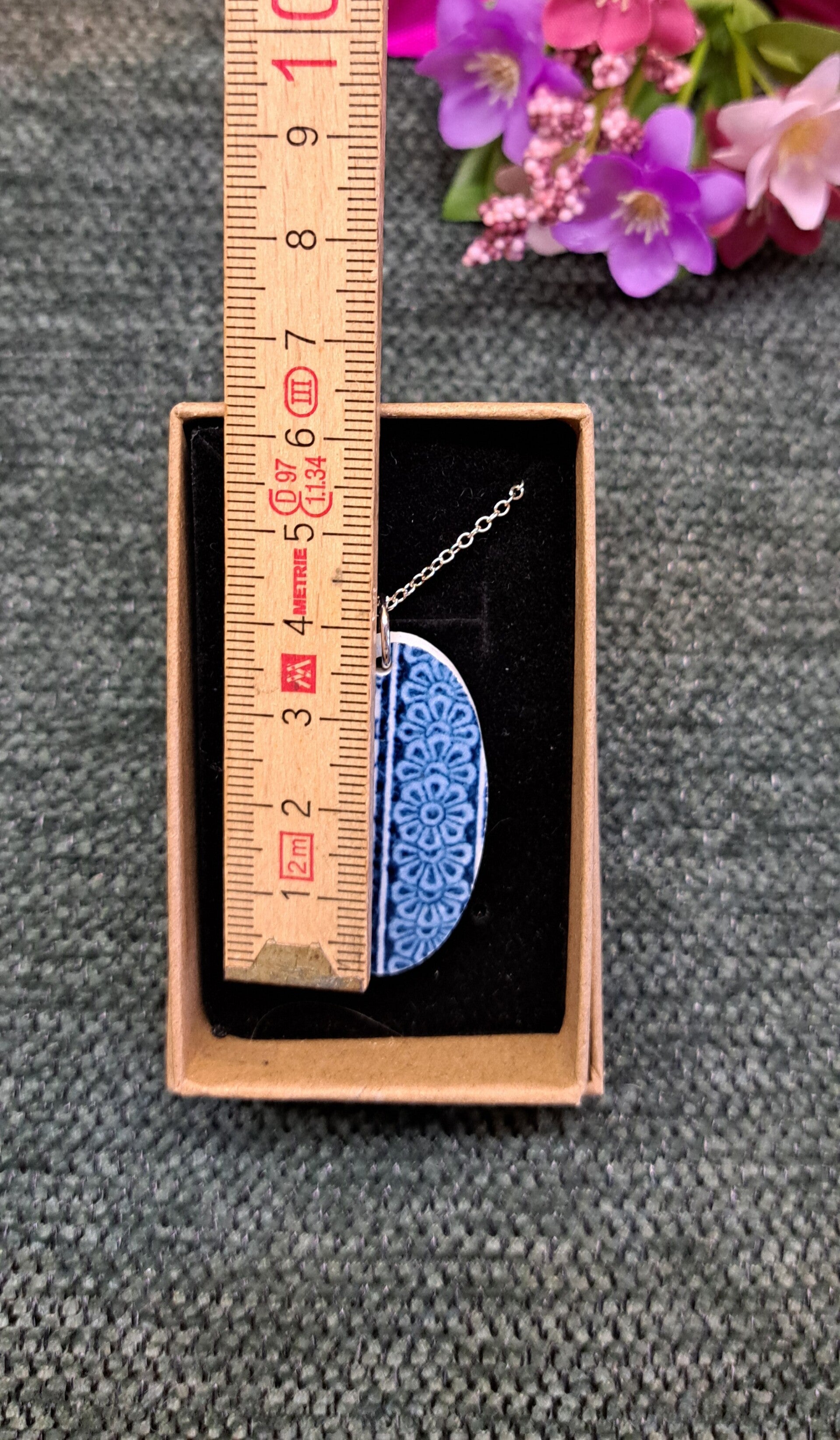 Dit is een uniek sieraad gemaakt uit een prachtig oud aardewerk bord. Het bord heet "Tokio" en is gemaakt rond 1930 door Société Céramique Maestricht.