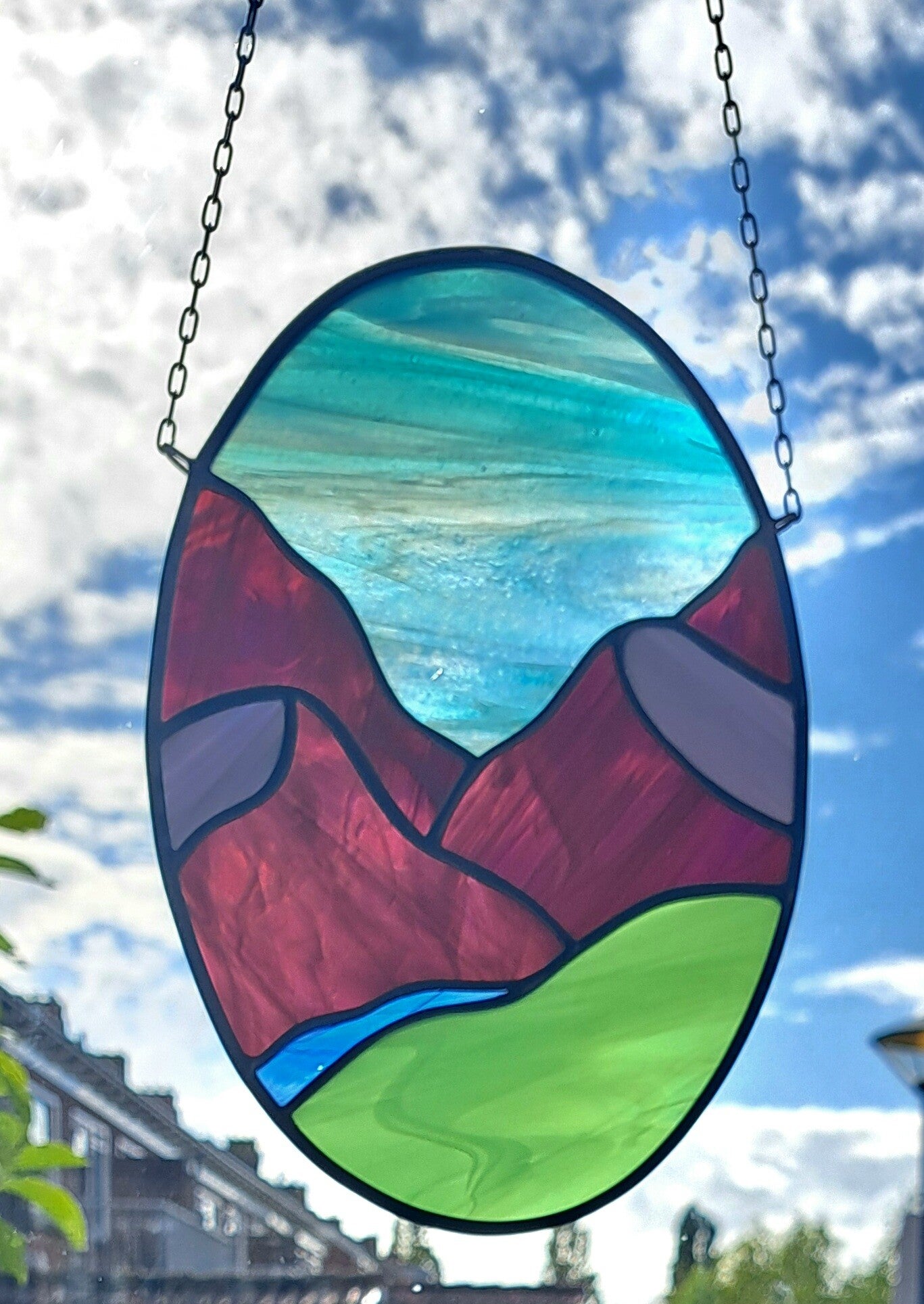 Breng de schoonheid van de natuur in huis met deze unieke raamhanger, handgemaakt volgens de traditionele Tiffany-techniek. Elk stukje glas is zorgvuldig gesneden, omrand met koperfolie en gesoldeerd tot een harmonieus tafereel.