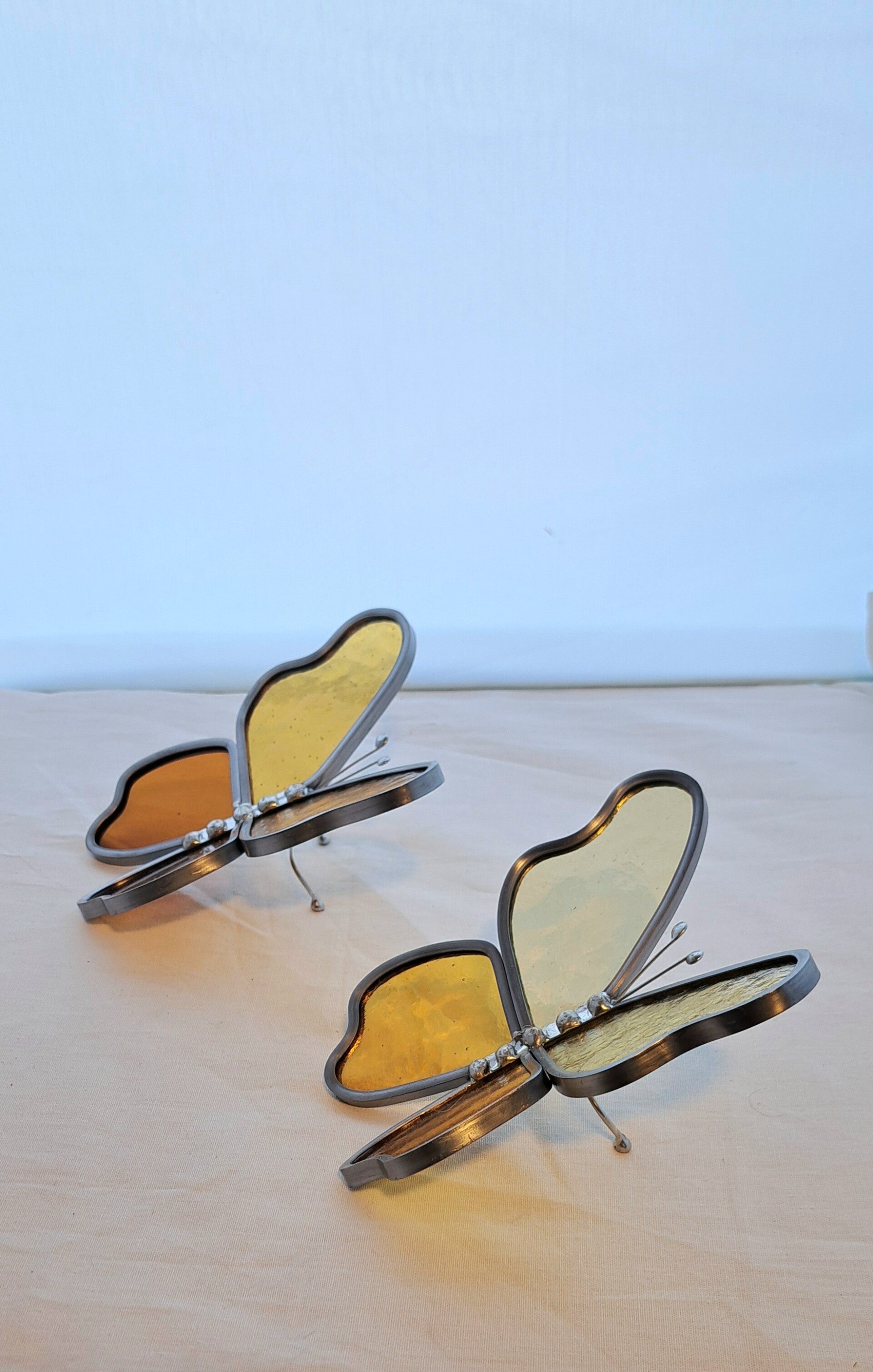 Wanneer het licht door het glas schijnt, komen de kleuren extra mooi tot leven. Elke vlinder is met de hand gemaakt en daardoor uniek.