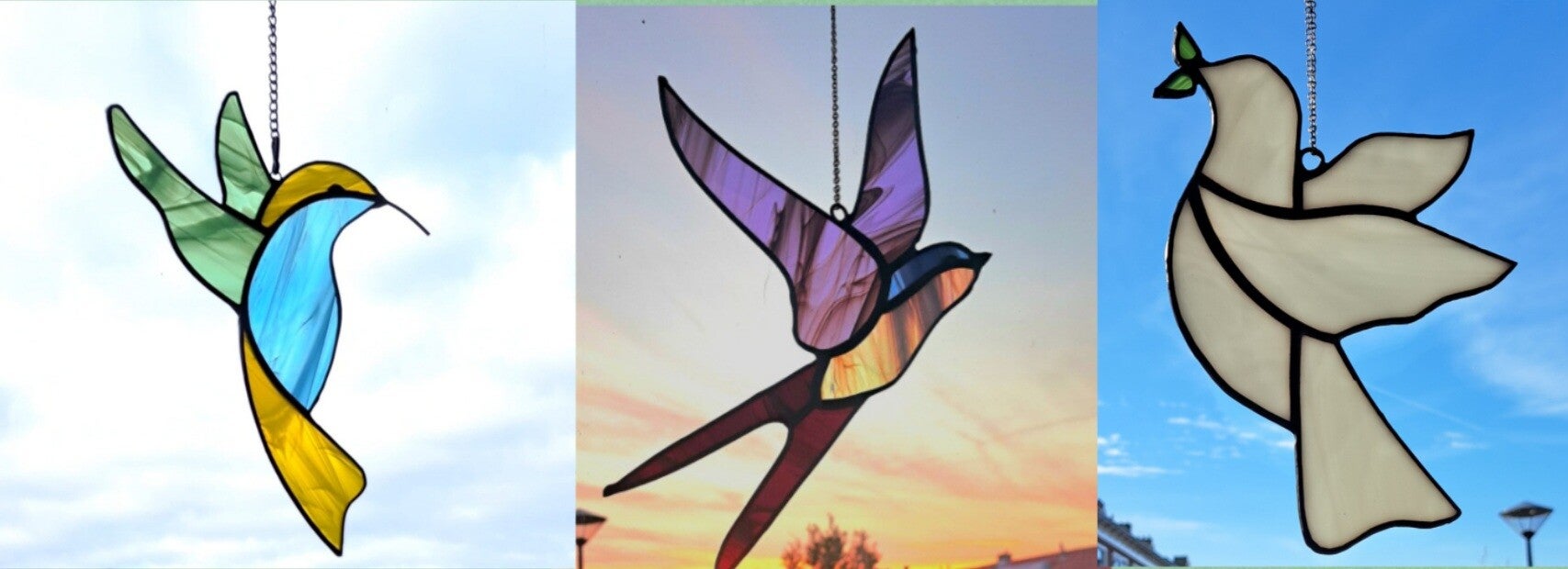 Deze prachtige handgemaakte raamhangers zijn unieke kunstwerkjes, vervaardigd met de befaamde Tiffany-techniek.